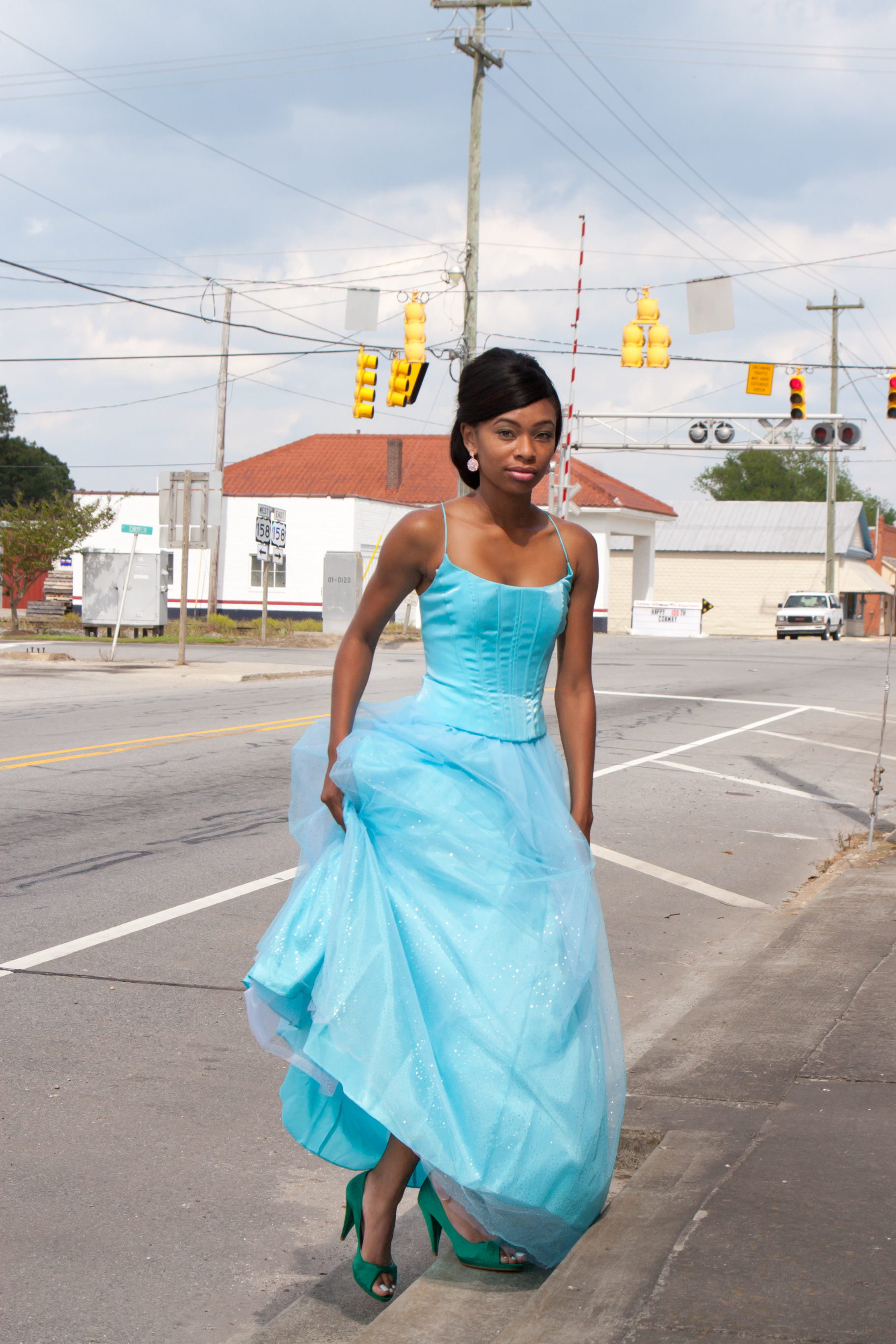 Eleesha, Blue Prom, Green Satin Heels, Downtown Conway, North Carolina, 2014