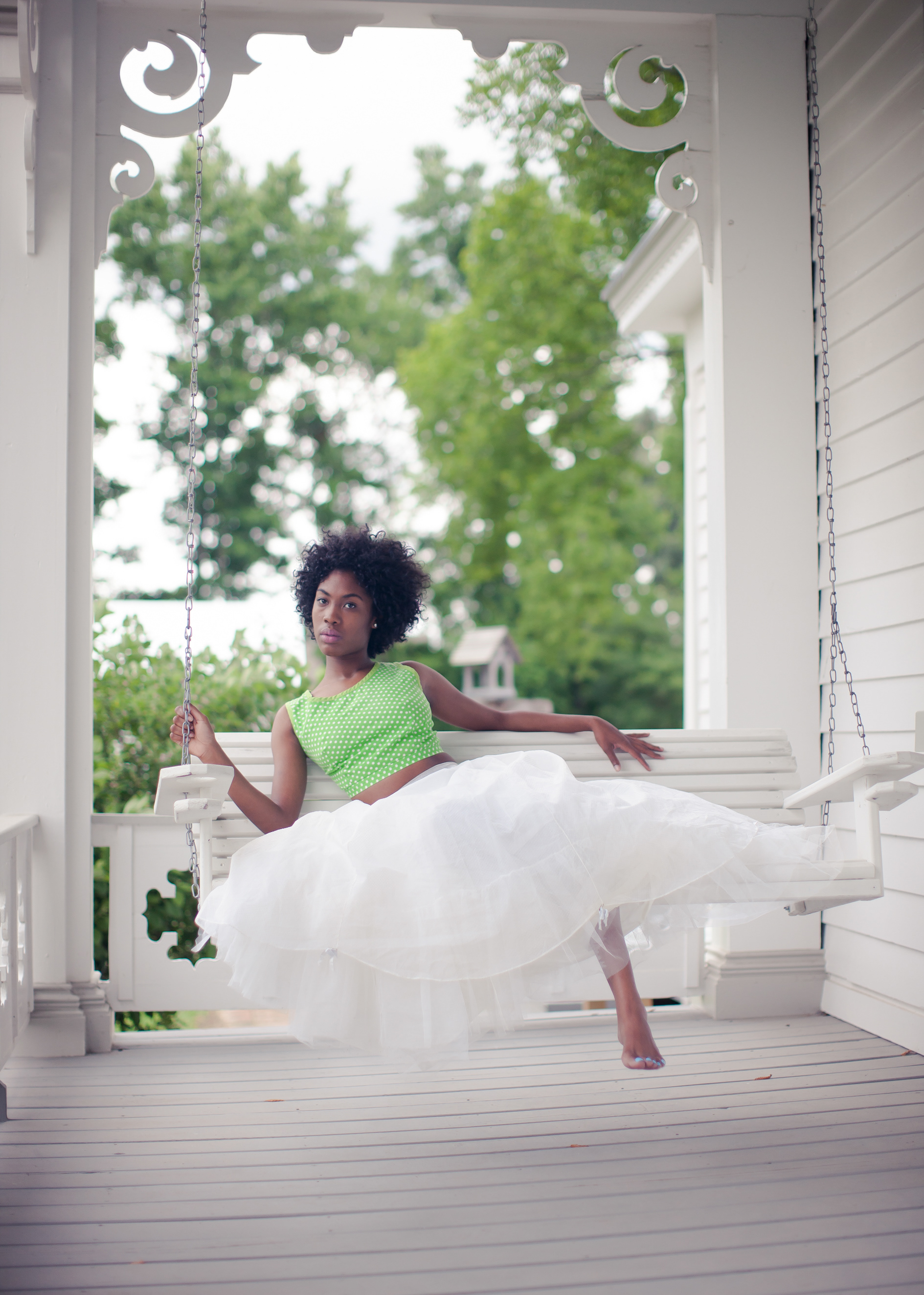 Shae in Polka-Dots and Crinoline, Morning Porch, D.A. Barnes House, Murfreesboro, North Carolina, 2014