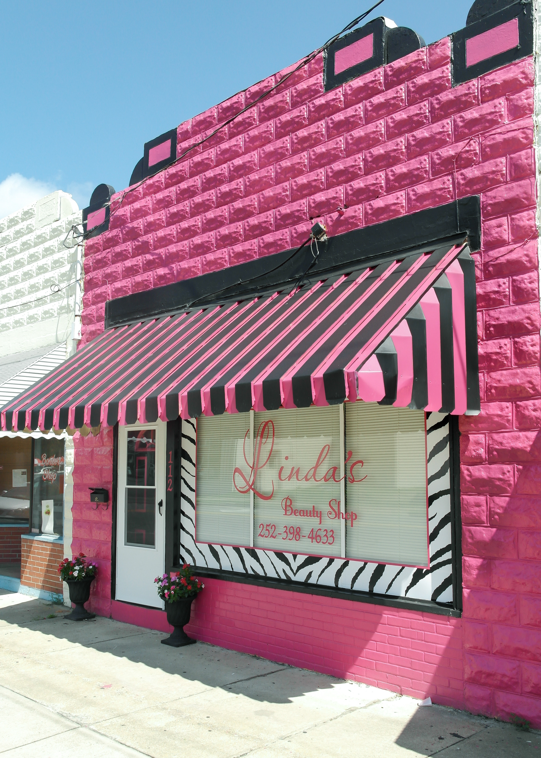 Linda's Beauty Shop, Main Street, Murfreesboro, North Carolina, 2009 and Kennedy, Velvet, Satin, Pearls, Church Street, Conway, North Carolina, 2014