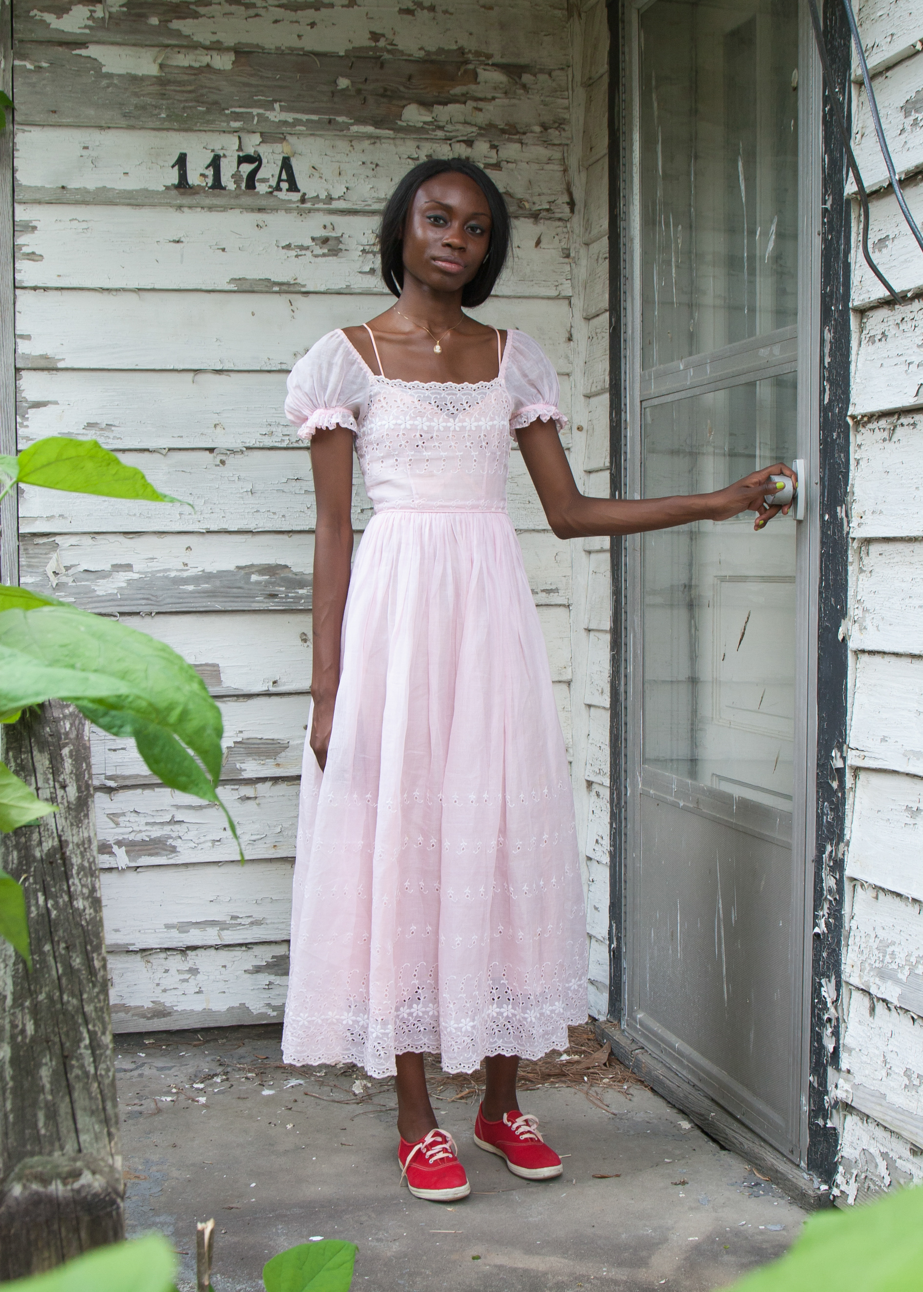Erika, Pink Sheer Dress and Cherry Red Keds, 117 A Church Street, Conway, North Carolina, 2014