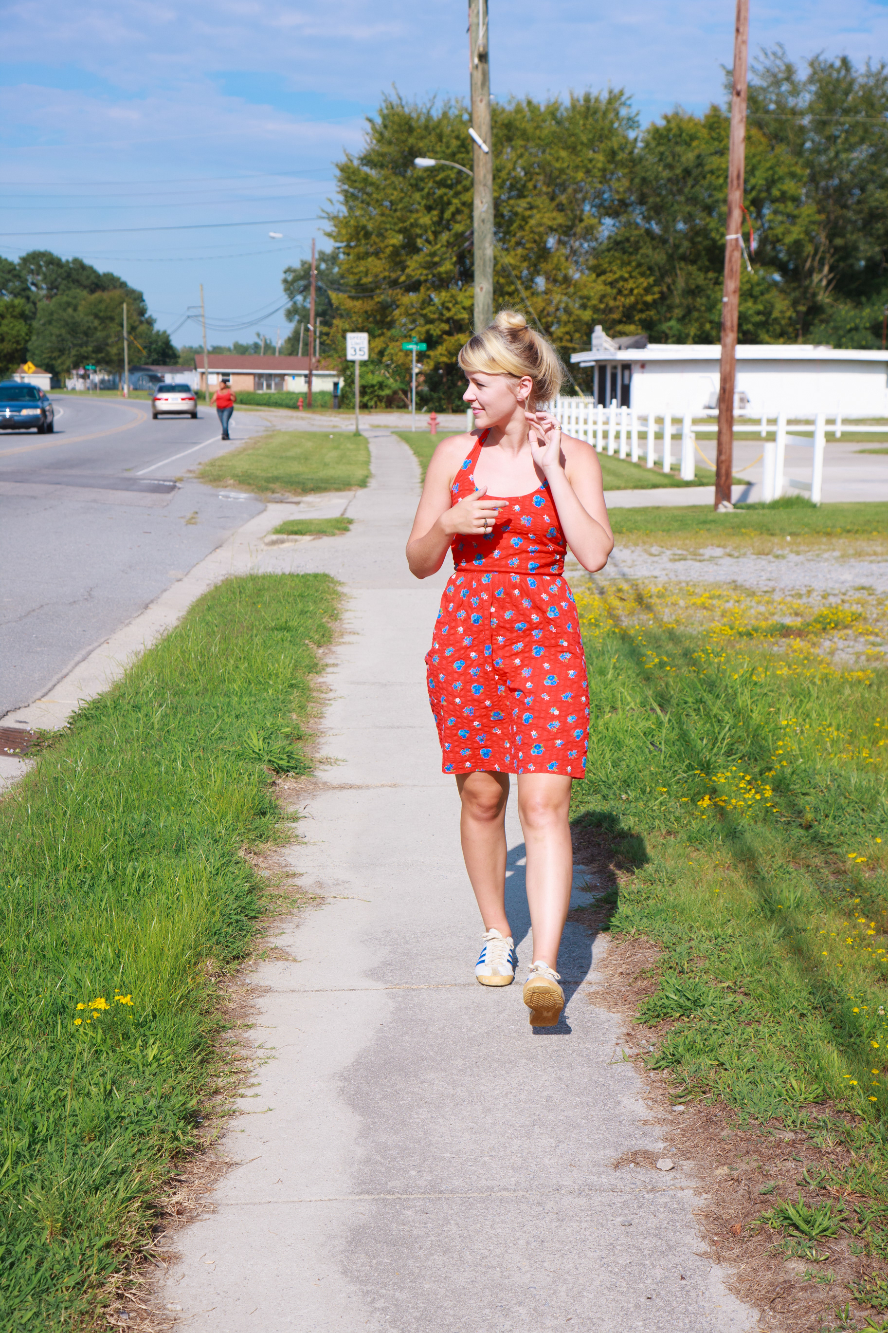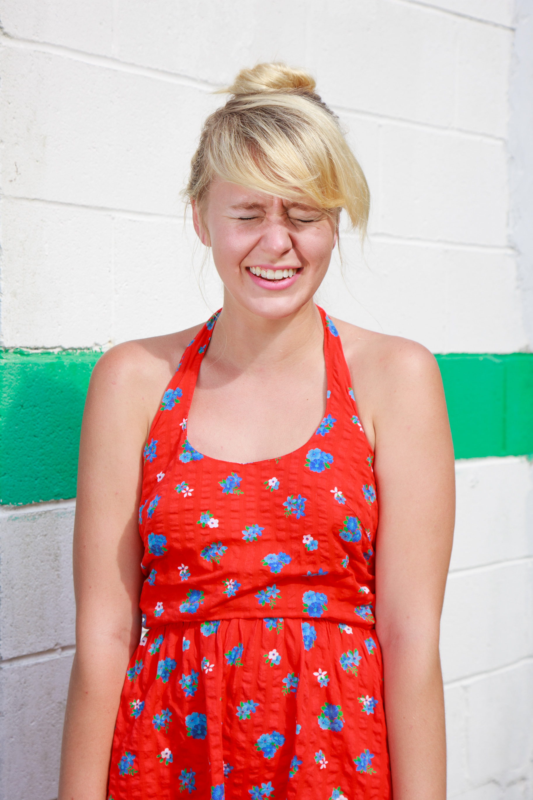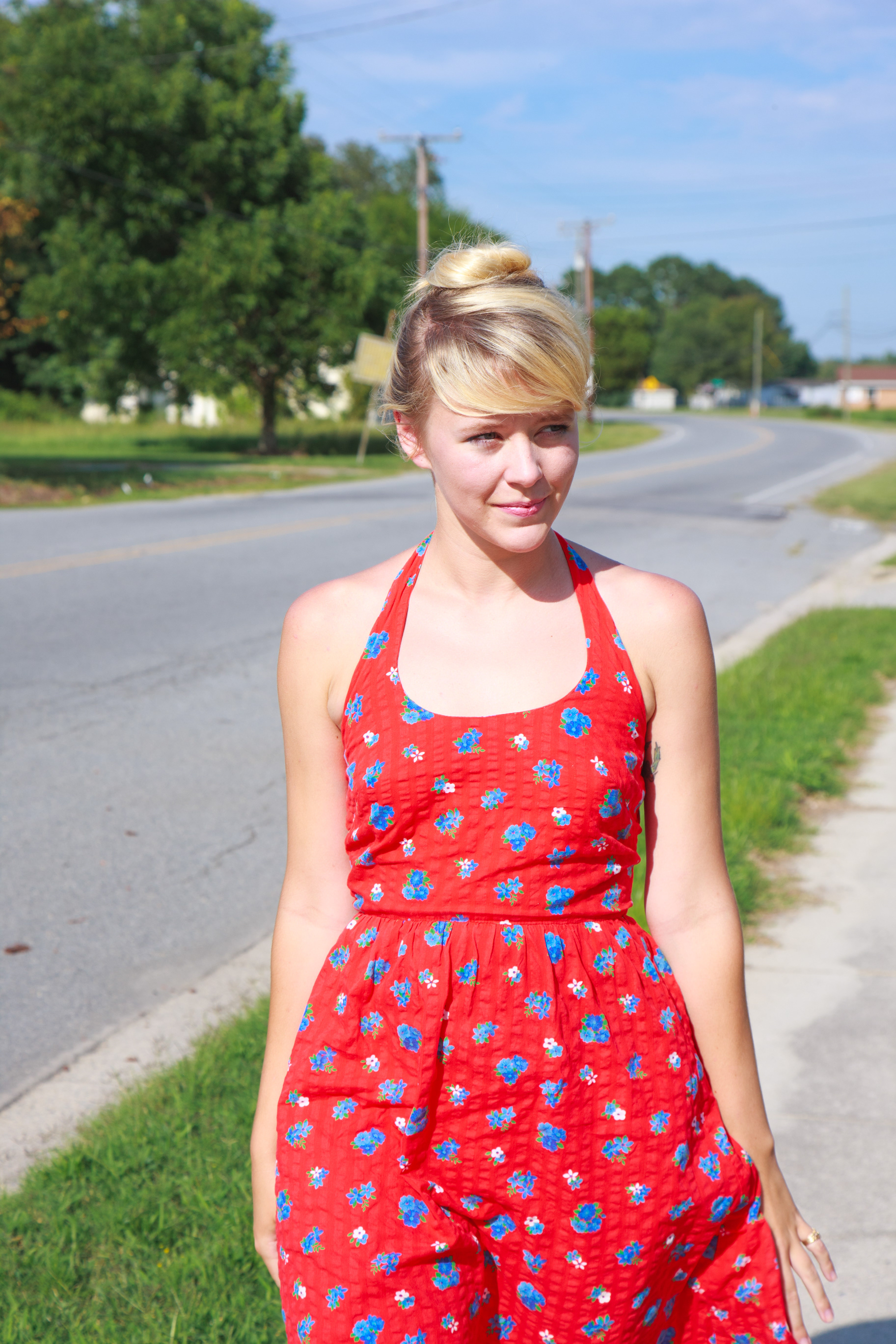Ashleigh Bryant Phillips, Red Floral Halter Dress, Woodland Launderette, North Carolina