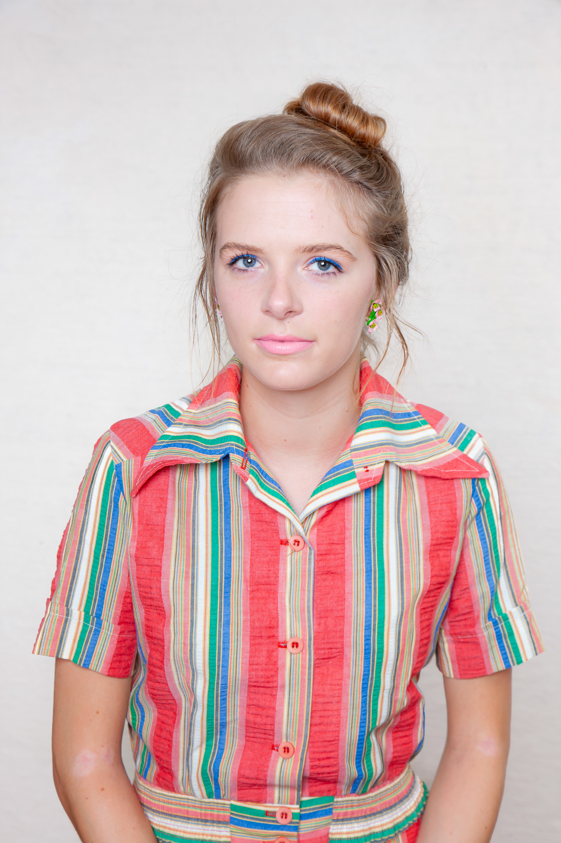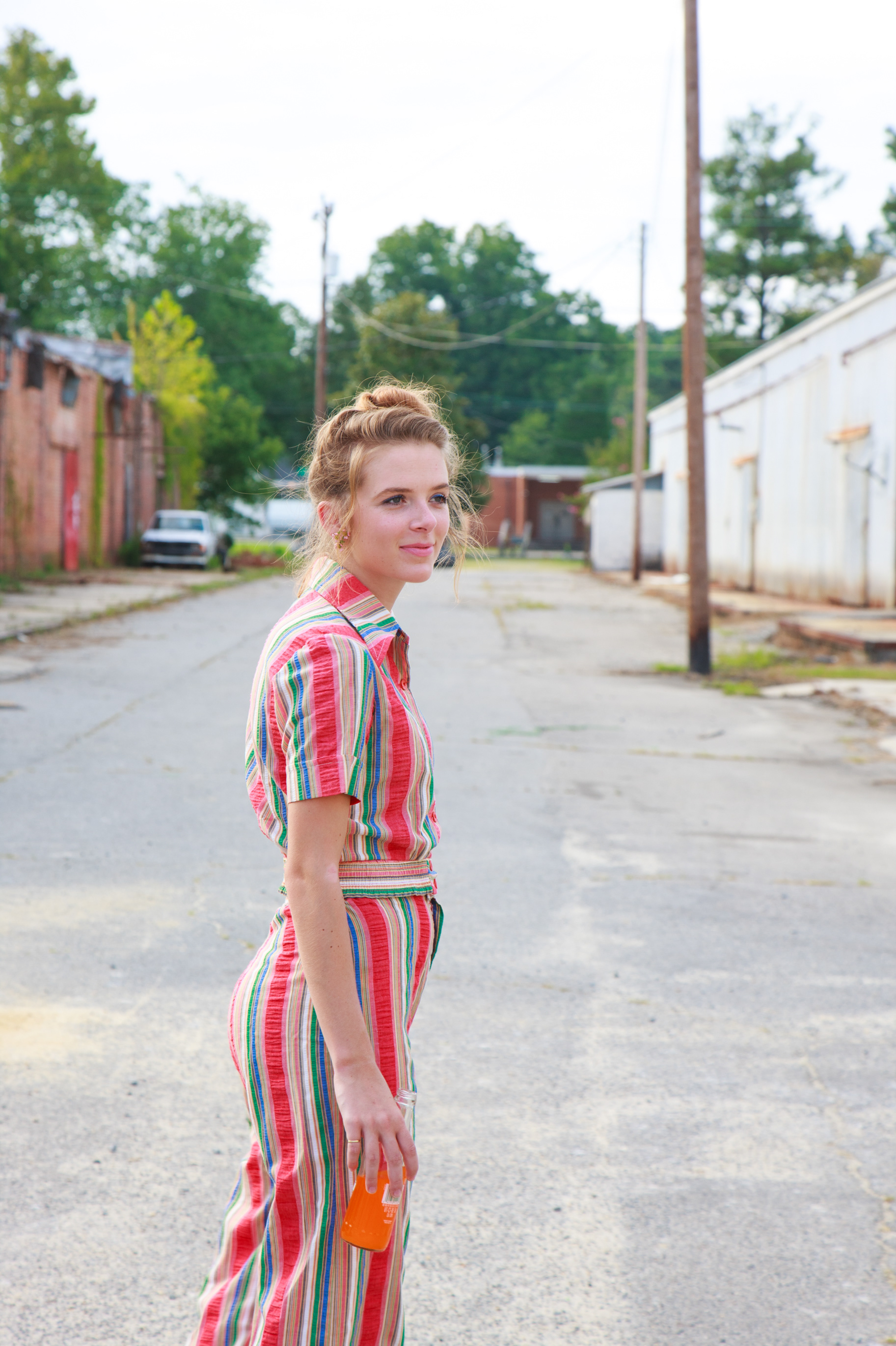 Sarah Beth Phillips, Seer Sucker Striped Pant Suit, Parlor Portrait